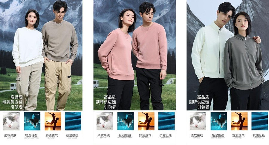 此外,還有其他面料如棉質(zhì)面料、滌綸面料、羊毛面料、珊瑚絨面料、仿麂皮面料、空氣層、珠地紋布、太空棉、混紡(如棉滌混紡)等,這些面料各有特點,適用于不同的季節(jié)和場合。